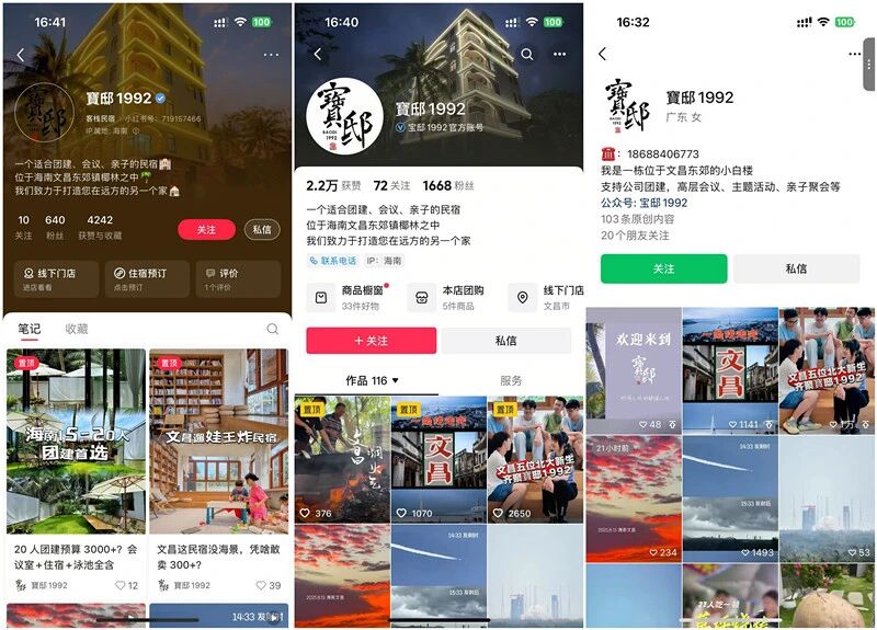 据悉,“寳邸1992”的销售并不依赖OTA渠道,有5成以上的订单来自新媒体。在7、8月的暑假旺季,新媒体转化订单更达到60%-70%。